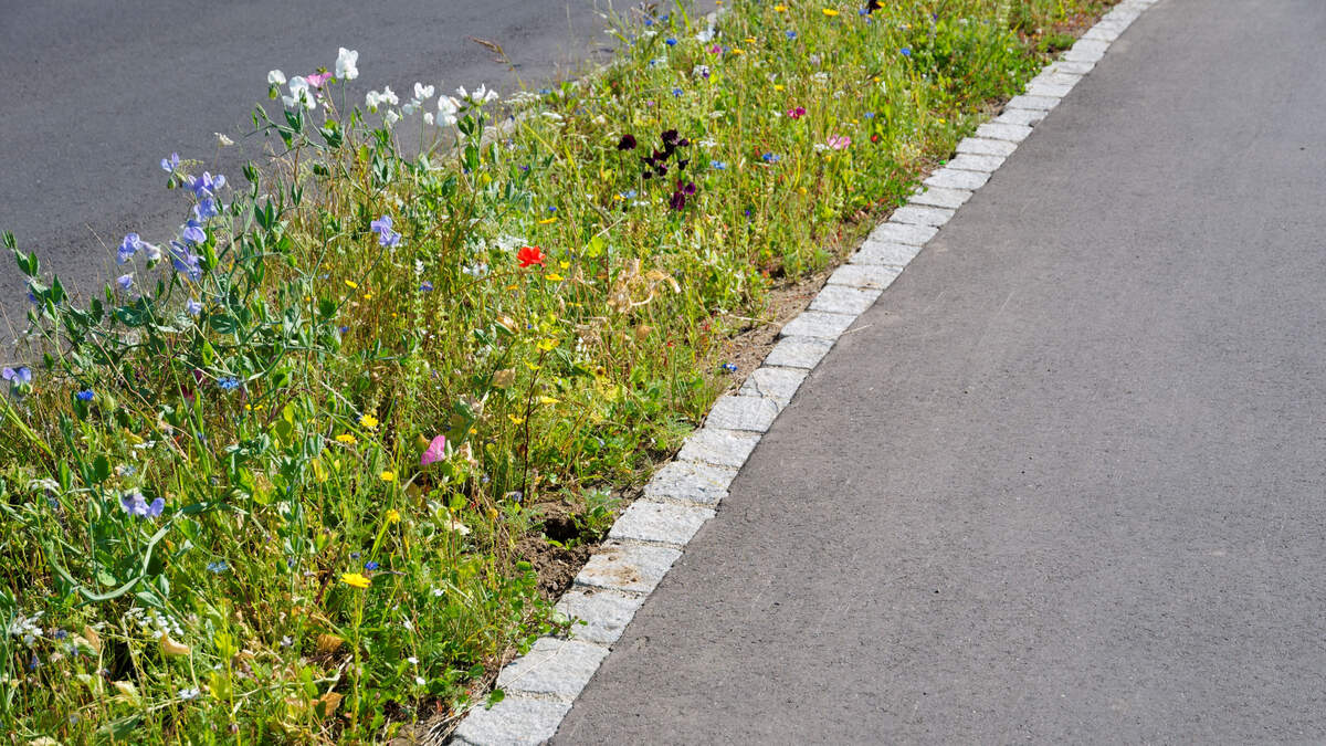 Benefits of having verges include visual aesthetics, and can be part of sustainability for water conservation or the management of urban runoff and water pollution