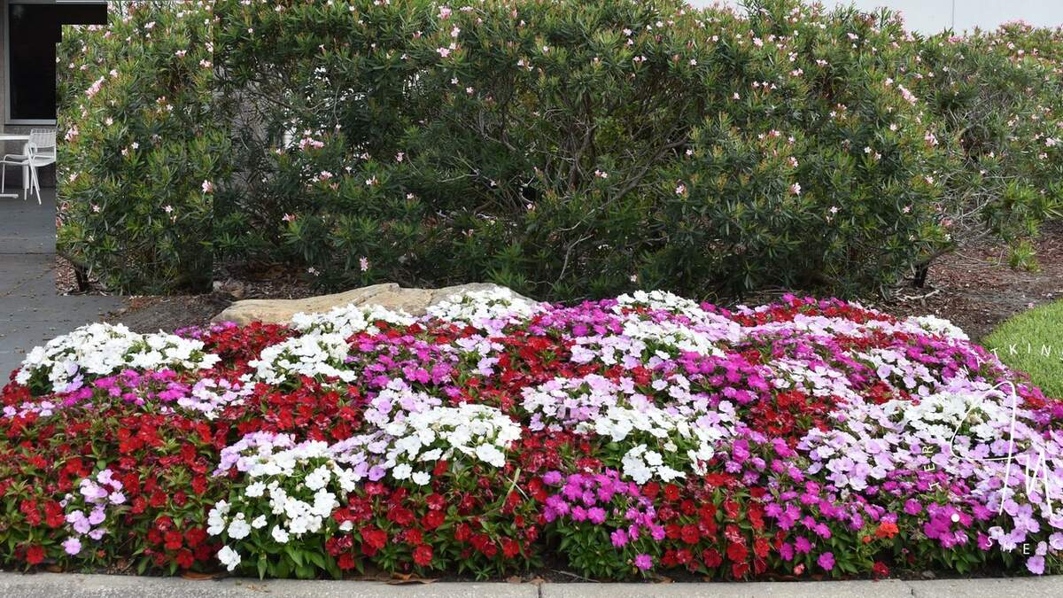 Flowers: Angelonia, begonias, bush daisy, butterfly plant, caladium, cat's whiskers, celosia, coleus, coreopsis, Dahlberg daisy, firespike, four-o'clock, gaillardia, gerbera daisy, ginger, goldenrod, impatiens, kalanchoe, lantana, lion’s ear, marigolds, melampodium, Mexican petunia, Mexican sunflower, moon flower, Porterweed, pentas, periwinkle, portulaca, purslane, salvia, showy primrose, shrimp plant, Stokes aster, sunflower, torenia and zinnias.